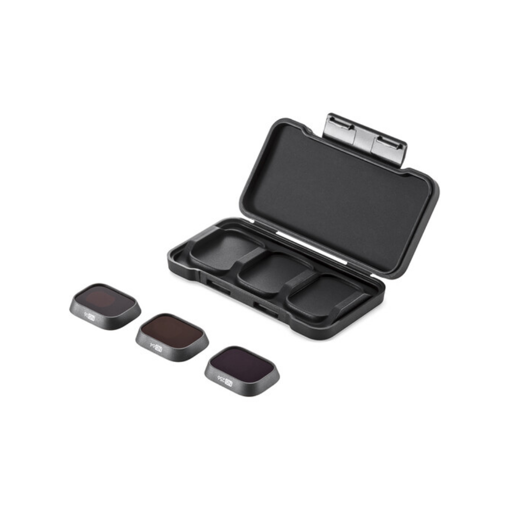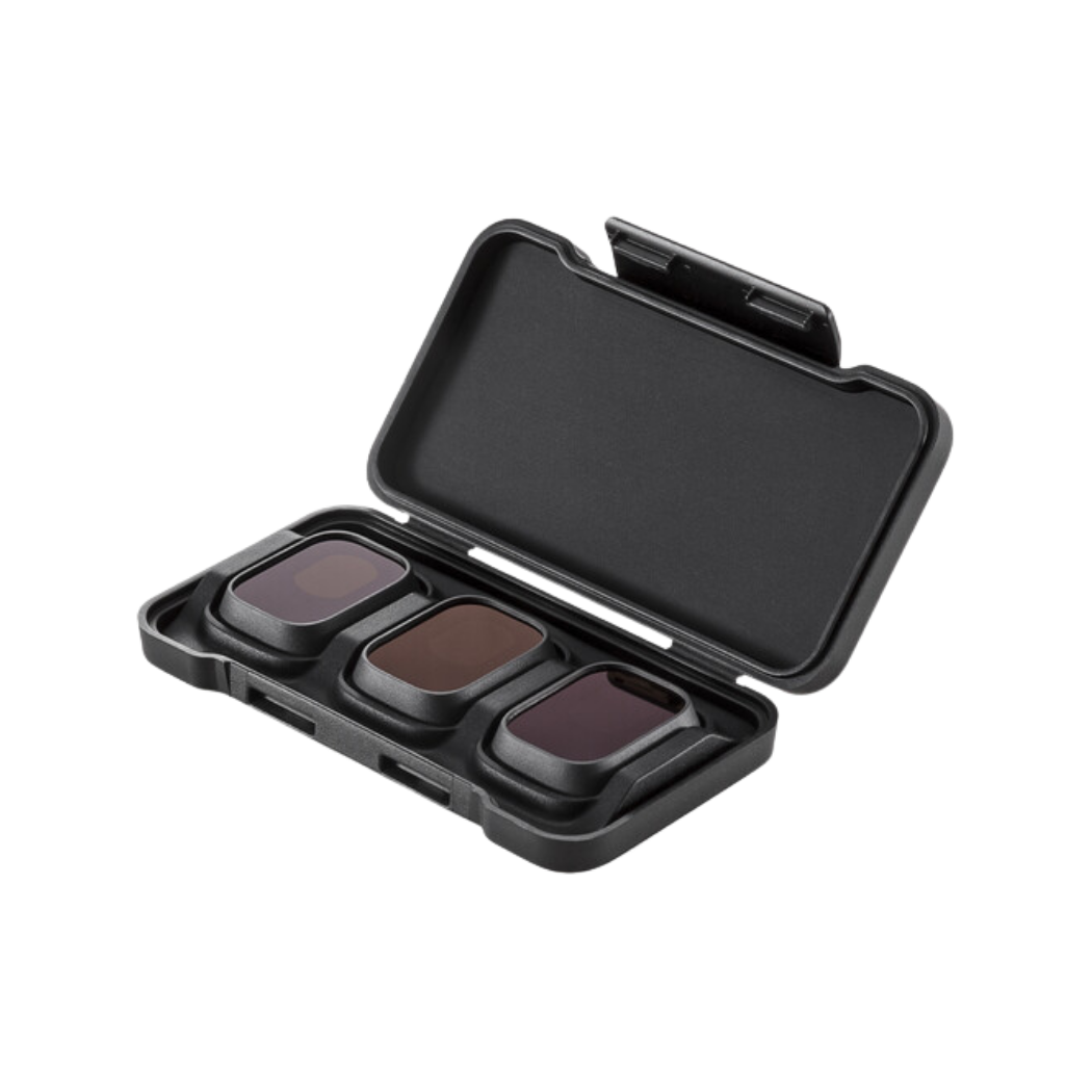 Este set de filtros está diseñado específicamente para encajar en el gimbal del DJI Mini 3 Pro sin afectar su equilibrio ni el movimiento de los motores. Su función principal es reducir la cantidad de luz que entra al sensor (Filtros ND), lo que permite utilizar velocidades de obturación más lentas para lograr el famoso desenfoque de movimiento natural (motion blur) en los videos. Además, si incluyen tecnología polarizada (PL), ayudan a eliminar reflejos no deseados en el agua o vidrios, y saturan los colores del cielo y la vegetación, logrando tomas épicas directamente desde el drone.