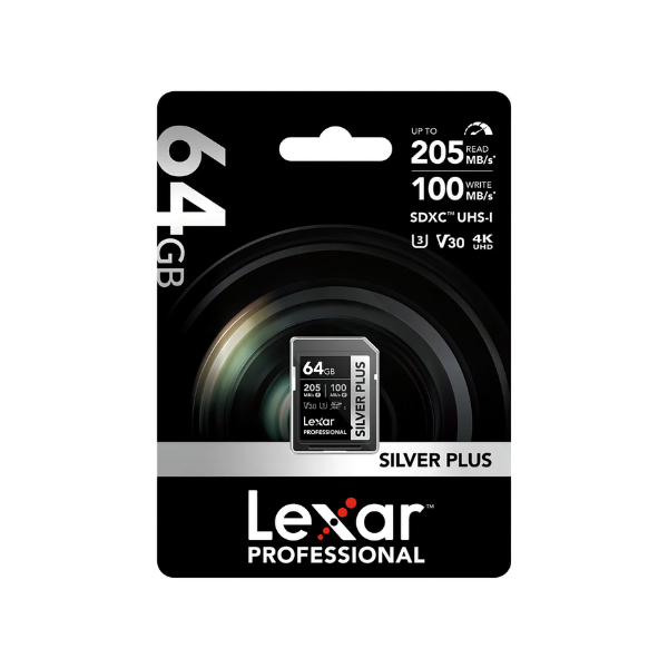 Tarjeta de memoria Lexar Silver Series SDXC de 64GB.