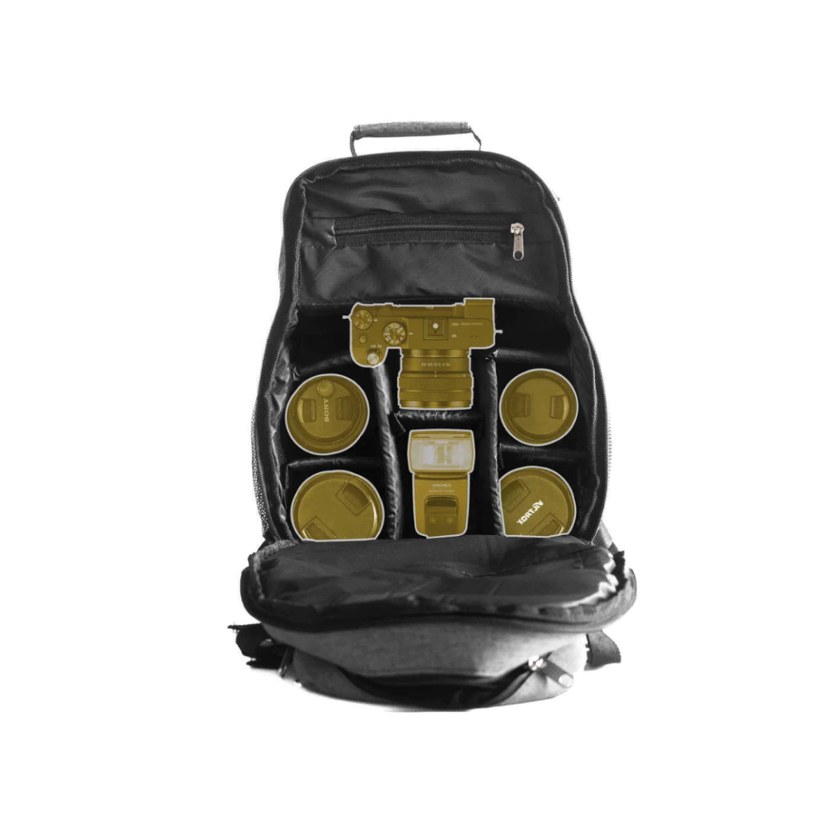 Capacidad: Cuerpo de cámara, 2 a 3 lentes, accesorios y artículos personales, ampliacion para tele objetivo.