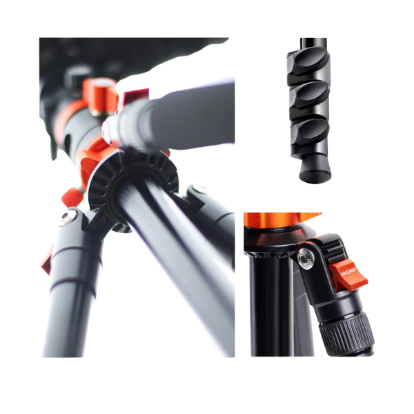 Patas ajustables: 4 secciones con bloqueo rápido y 3 ángulos de apertura independientes.